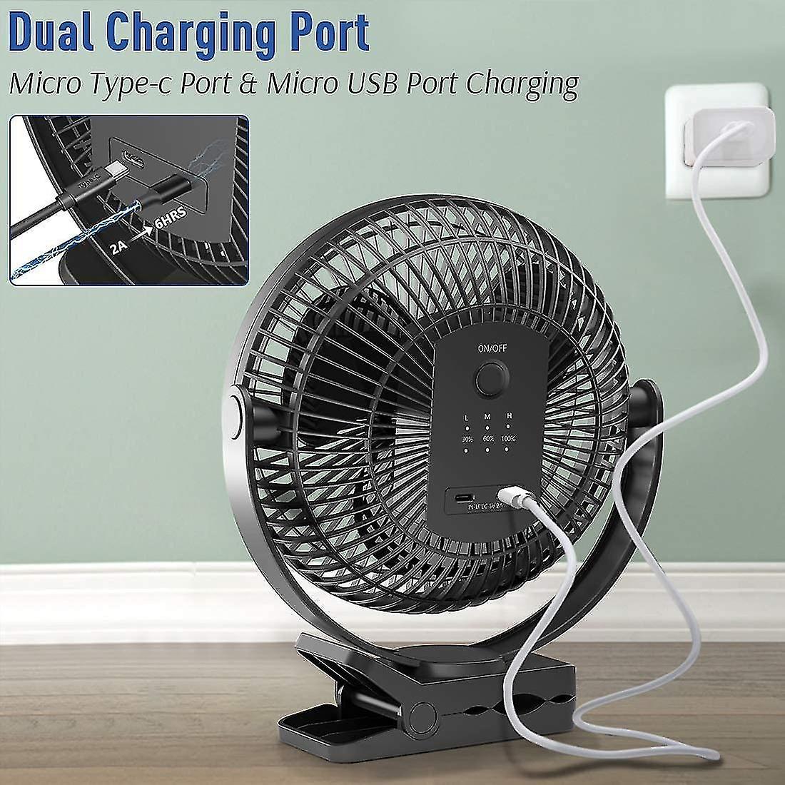 Multi-Function FanPortable fan and clip go together which definitely means you can position or hang the fan at any of your desirable places, be it desk, golf cart, carpet running, or even use it outdoors especially for camping.Quick Recharge yet Long Lasting BatteryThis battery powered fan comes with a 10000mAh battery. It has the potential to run for an entire day on a full charge. With its USB-C port and micro USB port, it offers 10W charging speed. Thus, the fan recharges 50% faster. It fully charges in just 6 hours.Robust Airflow with Low Operational NoisesOperational noise ranges from 20 decibels to 40 decibels for minimum and maximum wind speed mode respectively. Quiet airflow is paramount when it comes to clipping it to the side of the bed, ensuring your family enjoys undisturbed sleep.Compact SizeThis rechargeable fan is equipped with sturdy pliers. You can easily place it in a corner of your desk, next to your treadmill, in your golf cart, next to your bed, or anywhere you want strong airflow. Its compact size does not take up much space.High Rotation CapacityThe highly portable and durable fan is capable of 360 manual flip on the vertical side to ensure that there is no no dead corners, and everyone sitting next to it enjoys its cool breeze.- Brand: Unbranded